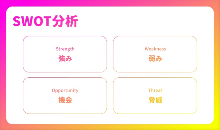 競合の強み・弱みを自社と照らし合わせることで、戦略の方向性が明確になります。